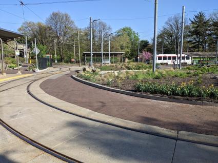 I sat among birds and flowers watching trains go in and out of the Western Portal of the city’s main light rail subway on Sunday, April 14. I didn’t have to worry about cars in the Portal Gardens, because there are none.