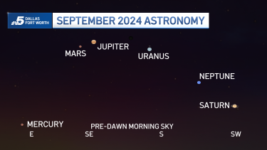 The first two weeks of September are the most favorable time this month to view this phenomenon. Any glow from the urban lights of Dallas-Fort Worth will limit the view.