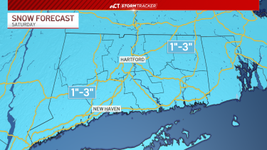 1-3″ of snow is expected through Saturday, but the best chance for those higher totals will be in eastern Connecticut.