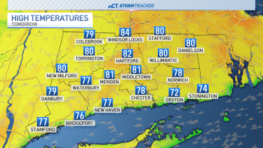 The average high temperature at Windsor Locks is 76 degrees and we’ll be well above the average both today and tomorrow.