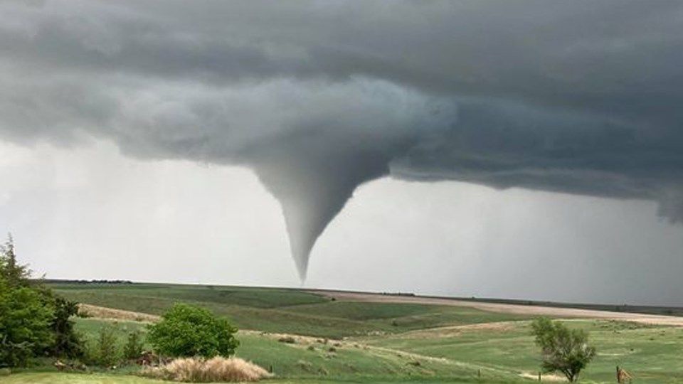 Scattered to numerous severe thunderstorms are expected to move east to northeast across the region this afternoon and evening. An outbreak of severe weather is possible, especially across southern Kansas, after about 4 p.m. The most intense storms may generate baseball to softball sized hail, very damaging winds up to 80 mph, and tornadoes. A few of the tornadoes could be strong and potentially long-track before 11 p.m.”