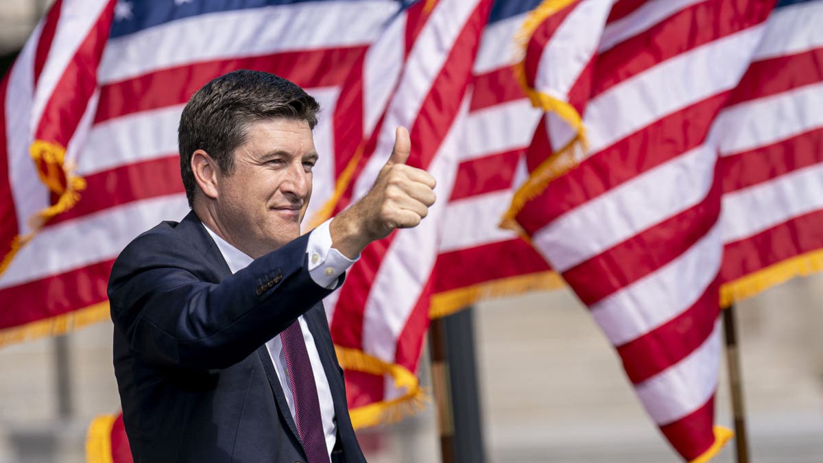 Rep. Bryan Steil addresses the audience at a campaign rally on Aug. 20, 2024, in Kenosha, Wisconsin. (Andy Manis/Getty Images)