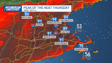 Thursday will bring in the peak of the heat with afternoon temperatures in the upper 80s and low 90s.