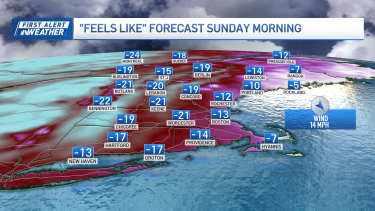 Another First Alert is on for Sunday as we see the coldest temperatures and wind chills of this season. Extreme Cold Warnings and Advisories are up for Saturday night through Sunday midday. Wind chills will be -20 to -30 degrees as actual lows drop to around zero. The wind remains strong 30-40 mph gusts from the northwest Sunday morning, slowly subsiding to 20 mph gusts at night.