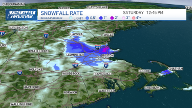 Scattered snow showers will start up in western New England Friday night, moving into Boston by sunrise Saturday. The heaviest snowfall rates seem to develop around midday Saturday and from the New Hampshire coast, then spinning down into the south shore by mid afternoon through Saturday evening.