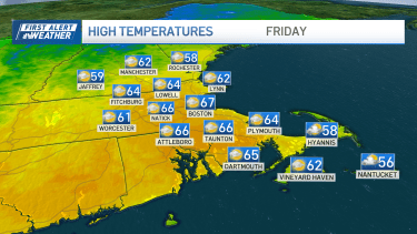 Sunshine and upper 60s. Sounds like a super way to kick off the season at Fenway Park this afternoon. Any early clouds will scatter as the sun pokes out and a steady northwest breeze keeps the sea breeze away. As a result, warmest temperatures will be found along the coast this afternoon, including Boston where we’re aiming for a high around 67 or 68. This will be the warmest opening day since 2022 when we hit 67.