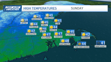 Lows tonight drop to the 20s and low 30s with wind chills Sunday morning in the teens and 20s. Highs stay in the mid 40s even with Sunday sunshine thanks to the gusty wind.