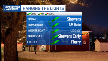 The milder temperatures and dry afternoons will make for decent conditions to keep hanging those holiday lights.