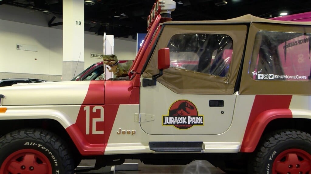 The show featured new model vehicles, pre-production models, pet adoptions, and custom cars, including one modified to look like a Jeep from the Jurassic Park film series.
