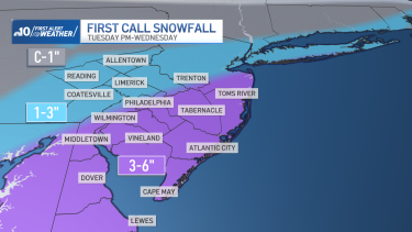 How much snow will fall in Philly, Pa., NJ and Del. on Tuesday?