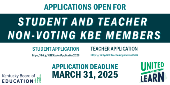 Applications are now being accepted for the non-voting teacher and student members of the Kentucky Board of Education (KBE).