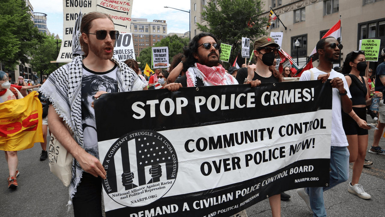 Washington, DC – On July 7, hundreds of activists from over 60 organizations mobilized to protest the 75th anniversary NATO Summit occurring July 9 -11 in the city. The protest, organized the Resist NATO coalition started at McPherson Square and marched to the White House, demanding an end to U.S.- NATO aggression and to defend peoples’ struggles.