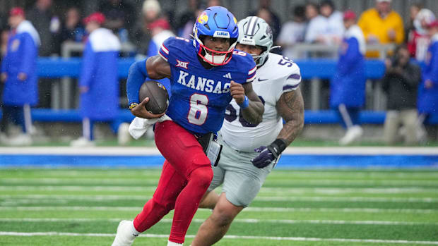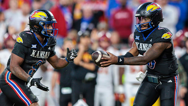 Despite the lack of overwhelming success, they still lean on it often. Kansas averages 4.5 yards per carry this season and continues to grind runs between the tackles and on outside zone. Both backs are a big part of that, but so is their quarterback.