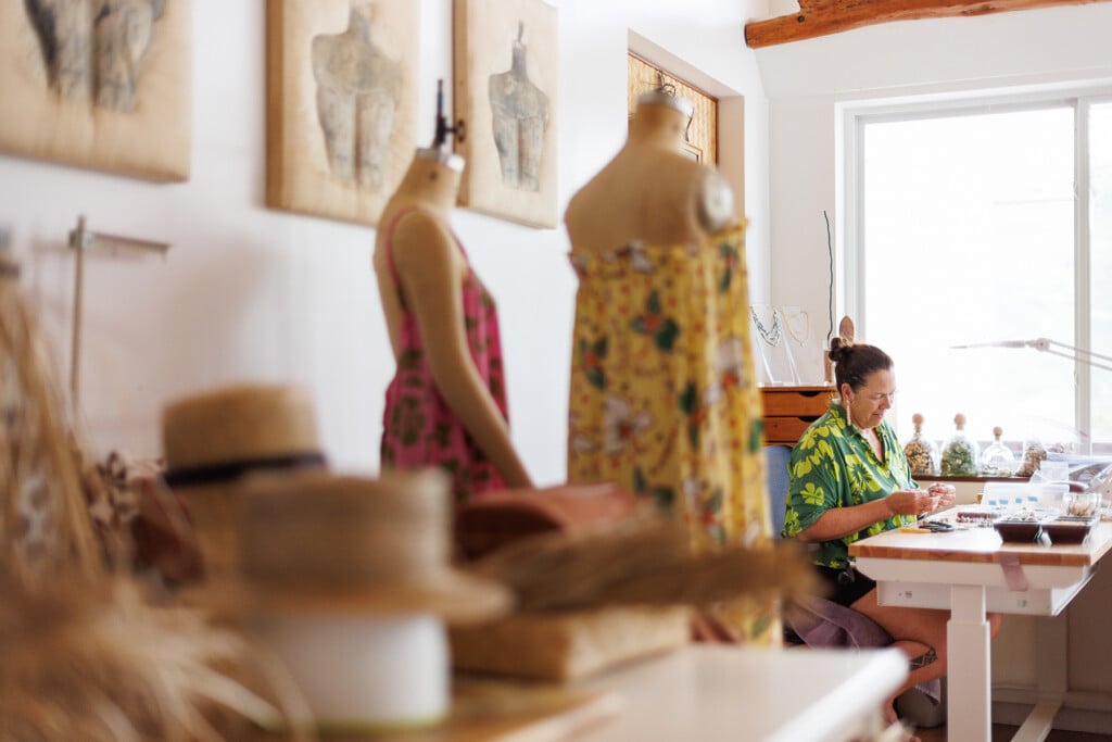 Jewelry and fashion designer Brooke Holt at work in her Mākaha studio. Photo by Aaron Yoshino