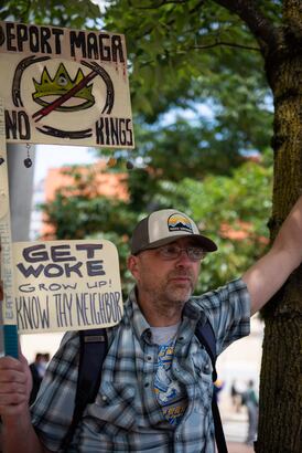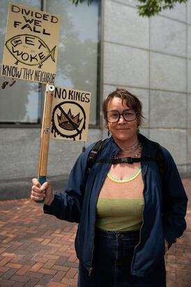 By official estimates, some 50,000 people packed into Tom McCall Waterfront Park for a “No Kings” rally June 14, most carrying signs decrying Trump’s expansion of executive power. (Or simply wishing him an unhappy birthday.) When the crowd moved onto Southwest Naito Parkway, the march stretched more than a dozen city blocks. People walking east on the Hawthorne Bridge could look down the Willamette River and see marchers in the same line crossing back west on the Morrison Bridge.