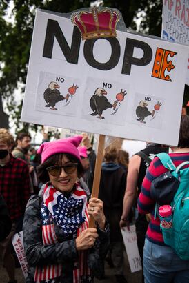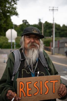 The display impressed people getting their first taste of Portland’s political fervor. “Way more people than our town, although our town is ultraliberal as well,” said Jan Chadwick, who was visiting from Santa Cruz, Calif. “This is just incredible.”