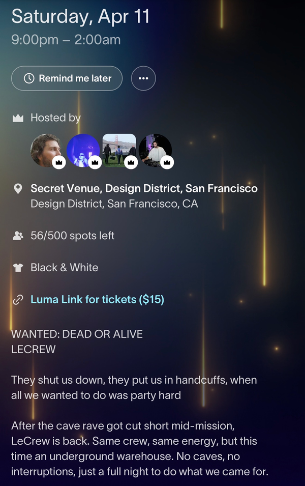 But in writing this feature, I think the most honest thing I concluded about the San Francisco dance party scene in 2026 is that it resists a thesis. So do I.